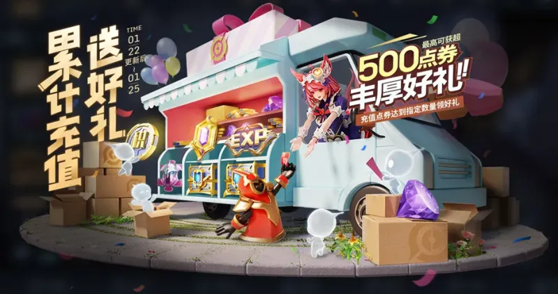 1月22日至1月25日,会再次开启累计充值的活动,奖励跟以前一样,氪到300档位即可拿满所有的荣耀积分。