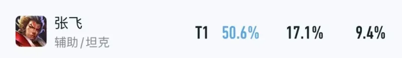 再加上“同行”还一直被砍,所以作为保护型坦辅的张飞,巅峰赛才能拥有50.6%胜率+26.5%BP率,已经有半步T0的强度了。