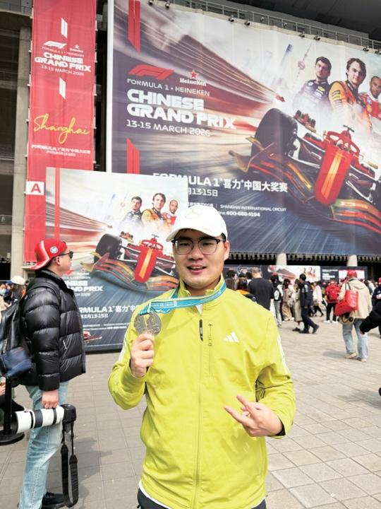 “所以我一定要把上午跑完半马后的完赛奖牌带来F1现场,然后拍照留念。两边都拿到参与机会真是太幸运了,从来没有考虑过要二选一。就算这一天活动的强度稍微有一点大,那也是特别开心、特别兴奋的。”从上海半马A区起跑的陆骏杰,他也是在昨天上午9点不到时就完成了比赛。紧接着他跟比自己当了更多年赛车迷的太太会合,用完一顿简餐后便抓紧时间往嘉定赶了。“体育也是我喜欢上海的一个重要原因。既是来看比赛的,也是来充分感受赛车氛围的,那我们肯定要尽可能赶早。”
